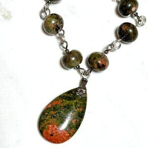 Genuine Jungle Green Unakite Necklace, Natural Gemstone Pendant Necklace