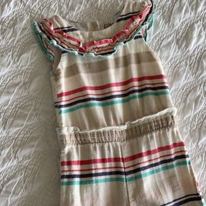 Genuine Kids From OshKosh Size 18M Striped Sleeveless Jumpsuit with Ruffles. Buttons on back. Linen and cotton blend. Lightly used. Excellent condition. No stains or damage.