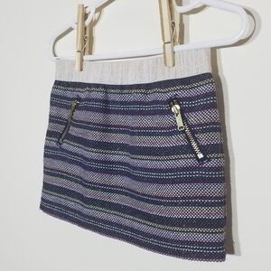 Gold threading throughout makes the skirt sparkle! Zipper front pockets. Very good condition with minor pilling on bottom hem.