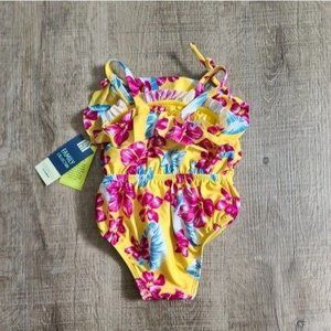 Genuine Kids Yellow Floral Baby Swimsuit NWT