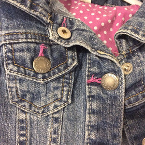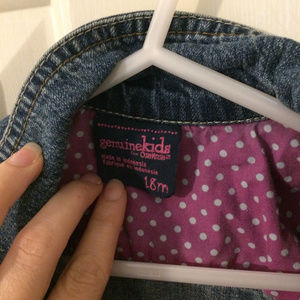 Super Cute Genuine Kids OshKosh Jean jacket- great condition- purple polka dots inside