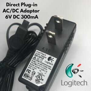 Get your devices powered up with this genuine Logitech direct plug-in AC/DC adaptor. Model No. P925BW06030AB66, it provides a reliable output of 6V DC at 300mA. This adaptor has been tested and is in perfect working condition.