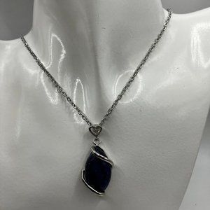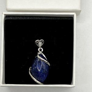 Genuine Lapis Lazuli Necklace Pendant With Silver Tones