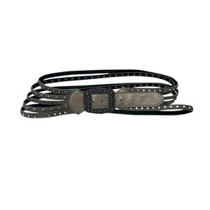 Genuine Leather 2 5/8" Wide Western Contoured Rhinestone Leather Belt M/L