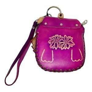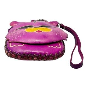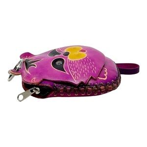 Genuine Leather 3D Raccoon Wallet Hand Tooled Wristlet Coin Purse Pouch