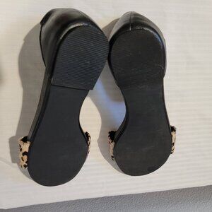 Genuine Leather Animal Print Sandals Black Beige Ankle Strap Size 8/38 LIKE NEW