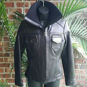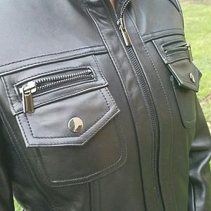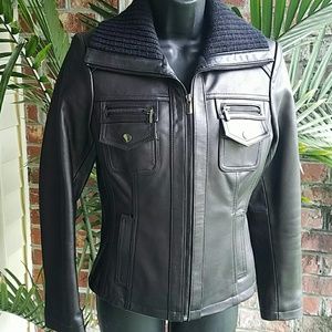 Black Butter soft leather jacket by "Avanti". Silver hardware.