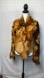 Stylish brown and tan leather patterned jacket with attached scarf. Unique design and vibrant colors.