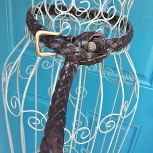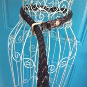 Genuine Leather Belt Mens Vintage Patagonia Braided Woven Real Leather Dark Brown Various Sizes can be clasped anywhere along full length of belt within the knots so fits various sizes loop it anywhere. Fit size 38-44 inches around.