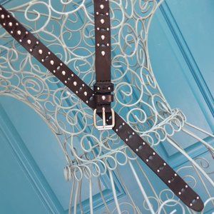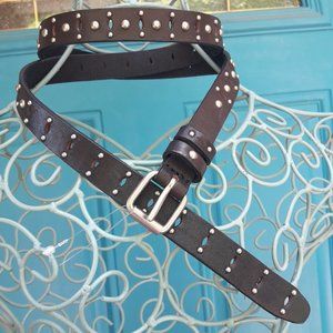 Genuine Leather Belt Metal Studded Silver Studs Grommets Rivets Goth Medieval. T