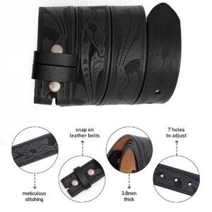The mens western belt uses good quality copper snap buttons, not easy to break, and has a convenient snap system for interchangeable cowboy belt buckle any time, customize your style!