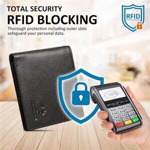 🧿Compact and Stylish Design: Measuring only 4.53*3.94 inches, its minimalist design makes the men wallet more slim, no matter front pocket, back pocket or suit pocket, it effortlessly adds a dash of sophistication to your everyday carry.