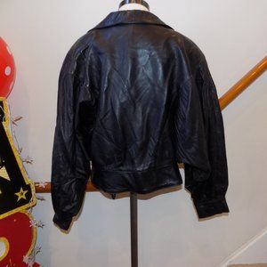 Black Genuine Leather Coat No Tags Dolman Sleeve Lined Pit:16