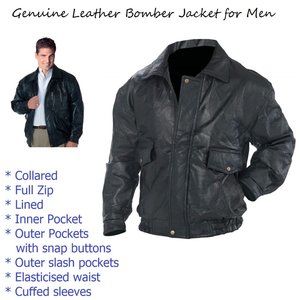 Genuine Leather Bomber Jacket for Men - Classic Leather Jacket