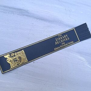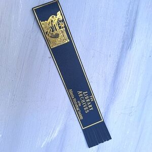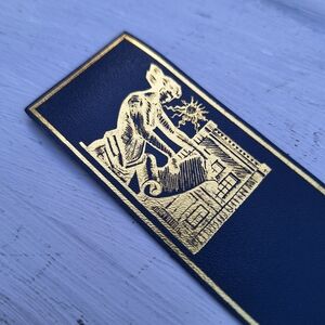 Genuine Leather Bookmark Gold Embossed Library Archive Fringed Blue