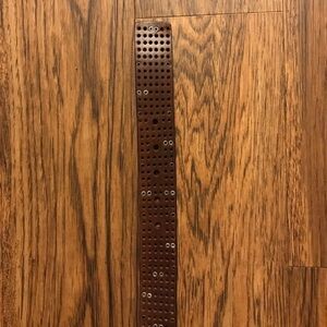 Brown with gold buckle. Silver and gold grommet decor on belt. Measures approximately 44" from buckle to end. 1.5" wide. Brand new.