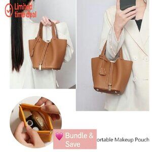 • **Style:** Shoulder bag with a chic lock design and gold-tone hardware, featuring a drawstring closure and a detachable interior pouch.