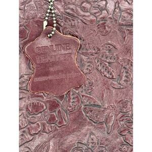 This genuine leather satchel is a must-have for any fashion-forward woman. With a burgundy exterior color and a floral pattern, it's perfect for any occasion, whether it's for school, university, or even a holiday. The bag features a rectangle shape, a zip and button closure, and a crossbody strap with a handle in the same color.