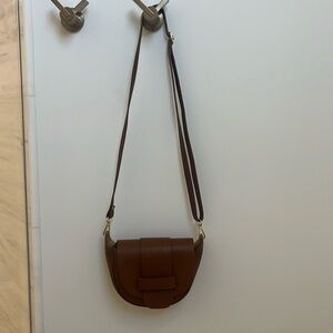 Genuine Leather Cognac Designer style Horseshoe Crossbody Shoulder Bag Purse