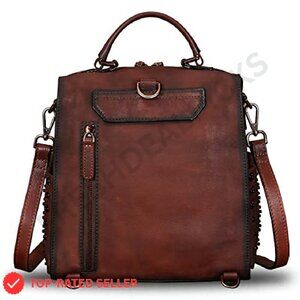 Genuine Leather Convertible Backpack Satchel Daypack Shoulder Bag Purse Chic