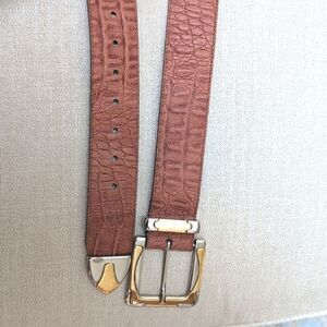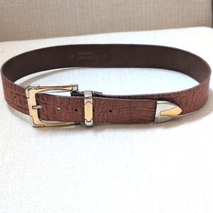 Genuine Leather Croc Embossed Brown Belt Gold & Silver Buckle and Tip Vintage