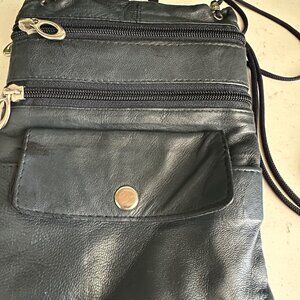 Genuine Leather Crossbody Bag With Multi Zipper Pockets & Adjustable Strap - Mad