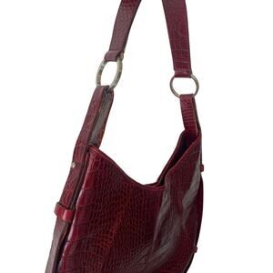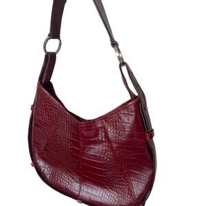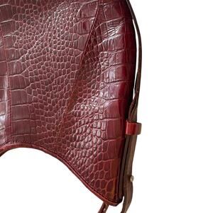 Genuine Leather Deep Red Animal Print Hand Bag Made in Italy