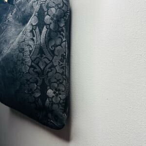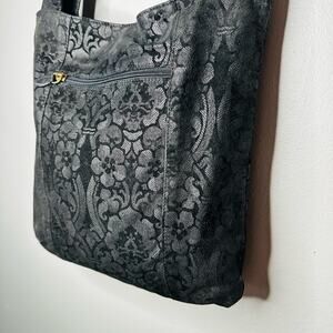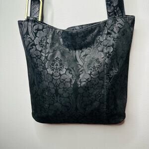 Genuine Leather Gold Zip Black Floral Design Crossbody Strap Bag