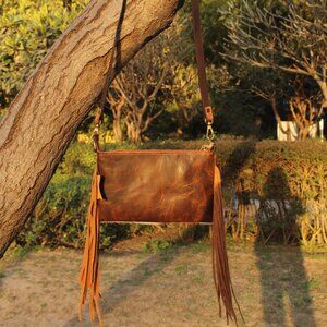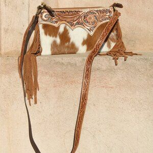 Amelia Genuine Leather Hair-on Tooled Bag Women's Western Handbag with Fringes (TB-06 TN) Features:- -> 100% Genuine Leather -> It has 1 inner zipper pocket, Real leather shoulder strap 45 inch approx." & The strap is detachable. -> Lightweight design, can be comfortably carried all day -> Color: Tan -> Hand Tooled Bag by Expert Craftsman -> Size : (L x H x W - 10 x 6 x 0.5 inch approx.) (without fringes) -> It easily fits your phone, wallet, and other daily essentials. -> Amelia Branded Handbag -> NOTE: The HAIR ON color and Pattern on each animal is distinct and unique, hence the Hair On pattern and color shown in the listing is only representative. Hair patterns and colors may vary on each bag, making each one unique. -> NOTE: Listing is ONLY for the item. None of the Props shown is included. -> RETURNS: Within 30 days. Return shipping is to be paid by the buyer. Looking forward to serving u with our beautiful products! Thank you!
