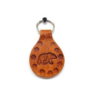 Genuine Leather Keychain Ring Fob Bear Tracks Animals Hand Made Tooled Gift New