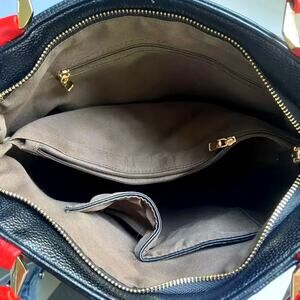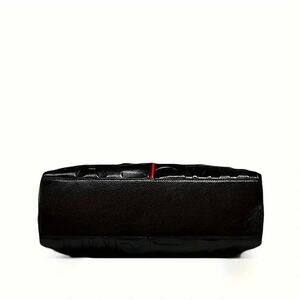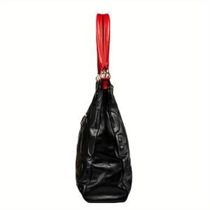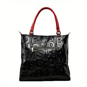 Genuine Leather Letter Embossed Tote Bag - Black/Red