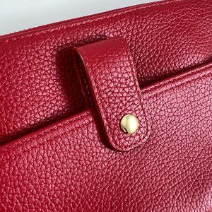 Beautiful soft Red Genuine Leather Zip Wristlet by Lodis. Gold metal zipper moves very smoothly, nice gold-tone hardware. Side pocket with snap closure. Very classic in style.
