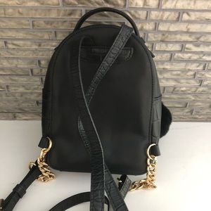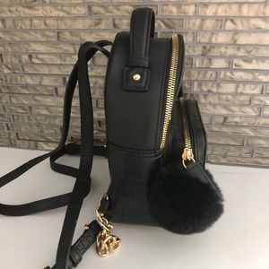 Genuine Leather Mini Backpack with Plush Ball. Rarely used and in great condition. No holes, rips, stains! Features adjustable straps, gold chain link accent slight bend in adjustable strap (refer to pics). Front exterior zip