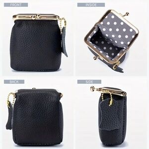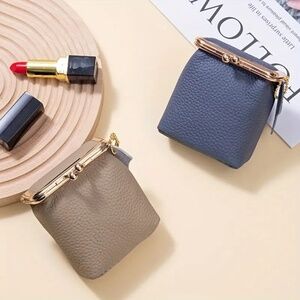 Vintage Feel Genuine Leather Mini Lipstick Case - Multi-Purpose Portable Storage Bag with Secure Kiss-Lock, Spacious for Coins, Keys, Earphones, Travel Makeup Organizer, Durable Cowhide Craftsmanship, No Print Design