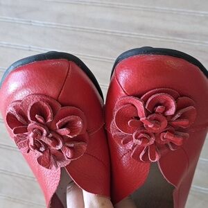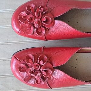 Genuine Leather Moccasins Flats Flower Detail Slip-on Red Fun Comfort Loafers