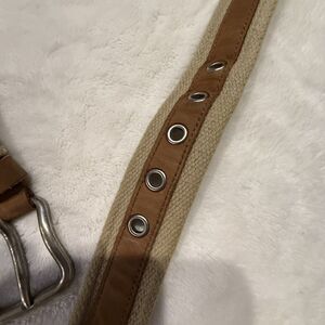 Genuine Leather On 100% Cotton Canvas Belt Men’s Size 40 Brown