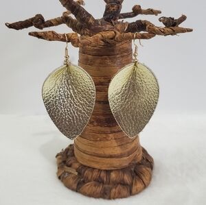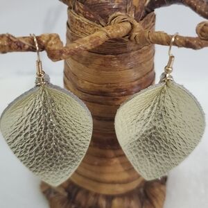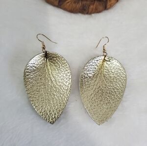 NWOT Genuine Leather Pebbled Gold Leaf Tear Drop Dangle Petal Fish Hook Earrings. Approximately 2" length, 1.25" width, lightweight, durable, comfortable, gold fish hook, nickel & lead free, safe for your delicate skin. Brand new without tags! See more earrings in different colors in my closet!
