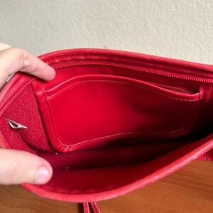 Stylish and versatile red leather crossbody bag. Perfect for any occasion.