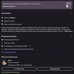 Original listing photos attached for reference. Bought on etsy, but didn't end up liking it for my phone. Made out of genuine leather. Has four card pockets, an Id window, and a hidden cash pocket. Also has a slot for your S Pen ( s pen not included)