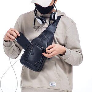 Genuine Leather Sling Bag with USB Charging Port Multi-pocket Chest Bag for Men