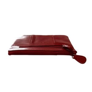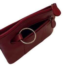 A wonderful small genuine leather key and card with a top zipper closure and leather zipper pulls.