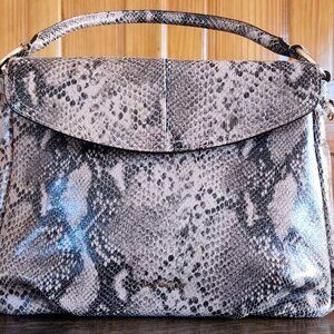 Elegant and functional genuine leather Cole Haan handbag. Python/snake print. With adjustable shoulder strap. About 14" wide and 10" tall. New without tags, in original bag.