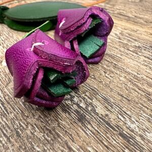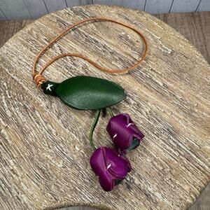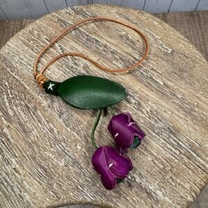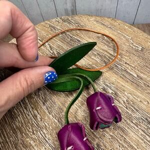 Genuine Leather Tulip Bag Charm Purple Tulip Spring Flowers Leather Charm