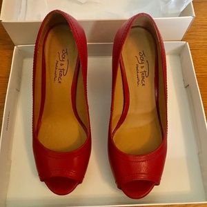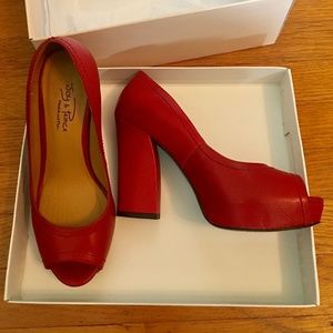 Genuine Leather Vintage Style Platform High Heels Open Toe Red Size 5.5