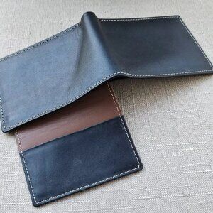 Genuine Leather Wallet Handmade Billfold Card Holder Dual Color Bifold Purse