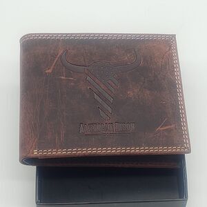 Authentic American Bison leather wallet, crafted for durability and timeless style. Made from genuine leather, this wallet features multiple card slots, a clear ID window, and a spacious bill compartment.