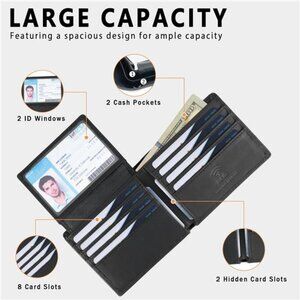 This minimalist wallet offers 8 card slots, 2 hidden slots, 2 ID windows, and 2 cash pockets, holding up to 12 cards for a clutter-free carry. Suited for both minimalists and those with multiple card needs, the ID windows are perfect for daily cards like driver's licenses and access cards