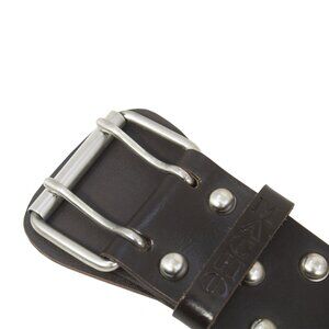 (2) STEEL SILVER BUCKLE: Helps keep the belt in place as you take on heavier loads.