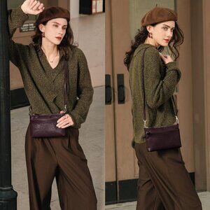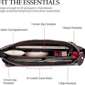 Genuine Leather Wristlet Clutch Wallet Purses with RFID Blocking, Small Crossbod