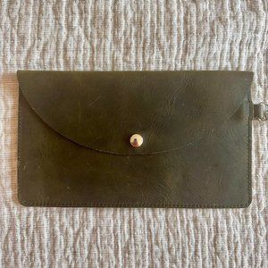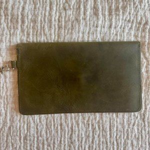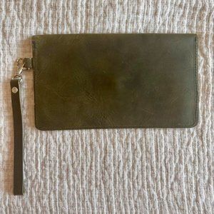 ๐ style: genuine leather clutch wristlet, olive green color, gold colored hardware, removable wristlet strap, natural suede interior - no liner
